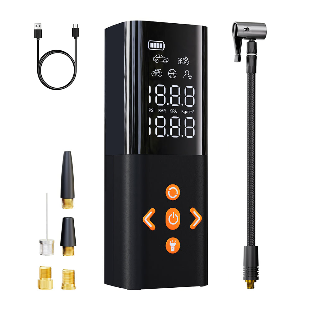 Five Inflation Modes: Preset modes for cars, bikes, motorcycles, balls, and custom use